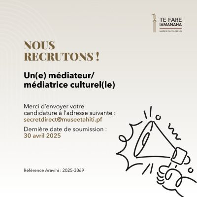 Te Fare Iamanaha – Musée de Tahiti et des Îles recherche un(e) médiateur/ médiatrice culturel(le).