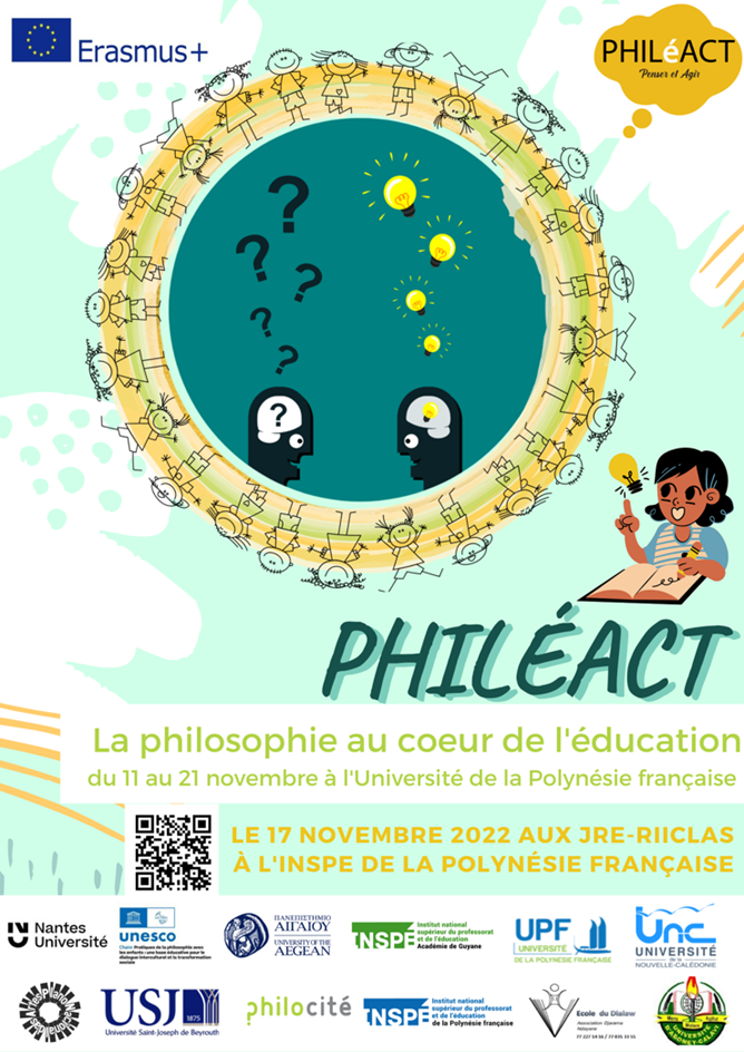 - du projet Philéact, des enseignants, des formateurs et des chercheurs ont été formés à l’animation d’ateliers de philosophie avec les enfants. D’autre part, des ressources expérimentations menées sur le territoire calédonien depuis plusieurs années.