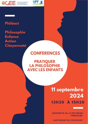 - Lien vers le symposium Philéact en Polynésie française, sur le thème de L’enfant, la philosophie et la littérature, durant lequel des conférences, une soutenance de thèse a eu lieu : https://phileact.univ-nantes.fr/actualites/phileact-a-linspe-de-la-polynesie-francaise-1